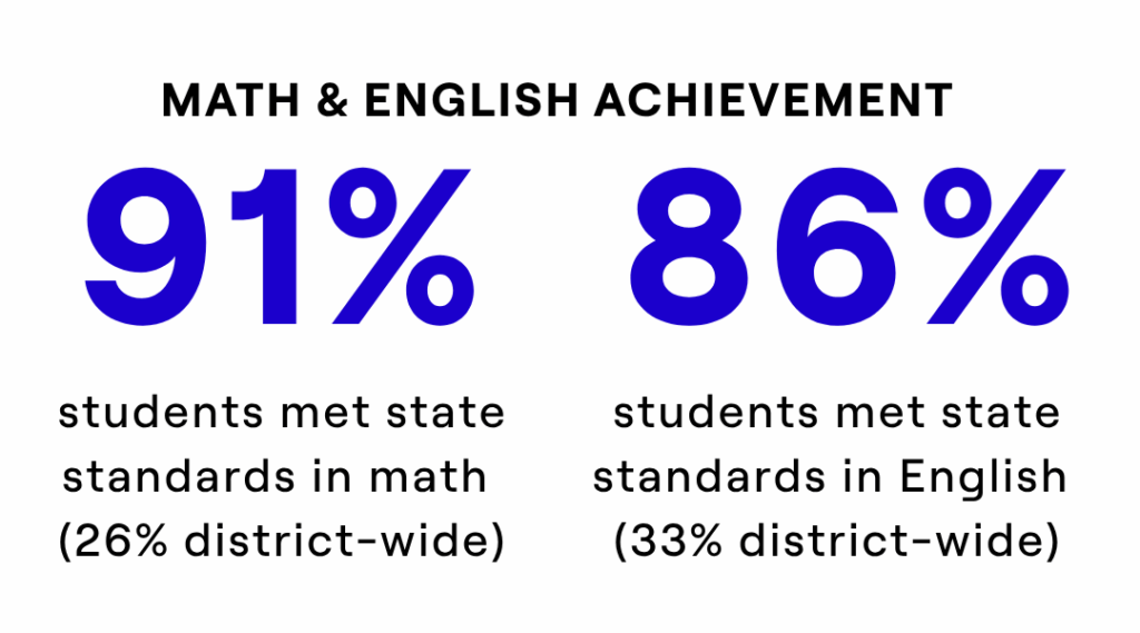To achieve academic excellence, the school combines data-driven, rigorous instruction with personalized learning that builds student agency. Teachers draw on high-quality curricula and strong professional development to create engaging, student-centered lessons that include guided and independent practice, small-group work, technology, and self-directed learning.